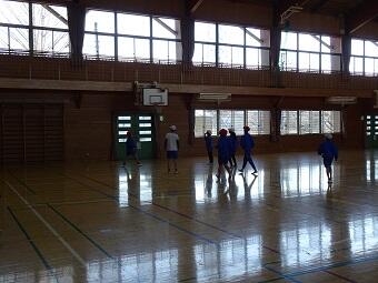 5年1組は体育で,サッカーのゲームをしていました。1時間目,気温はまだ氷点下でしたが,晴れて風がないのでよかったです。