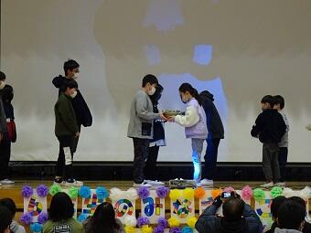 各学年・学級からの,感謝の言葉,お祝いや励ましのメッセージなどが発表されました。