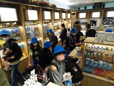 長谷通りを南に向かう途中、さっそく買い物をしている班がいました。