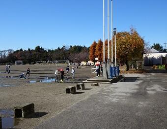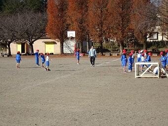 校庭のコンディションはよくありませんが,元気に外遊びです。