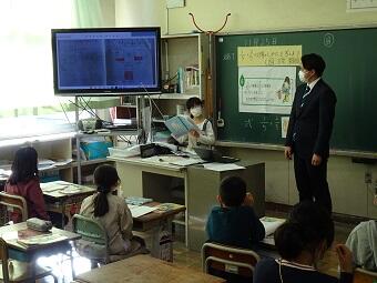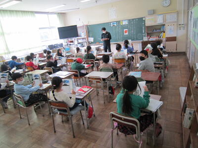 5年生は,ネッツトヨタの講師に来ていただき,3学級がそれぞれ2時間ずつ「トヨタ未来スクール」の授業を受けていました。講師の説明を聞いたり動画を見たりして,自動車産業は人や社会,環境に配慮しながら車作りをすることで,SDGsや社会貢献につながっていることを学びました。また,「カー&エコ ゲーム」に参加して,環境や経済活動,社会貢献などの関係を楽しく学ぶことができました。ネッツトヨタの皆様,本日は一日がかりでたいへんお世話になりました。有意義な時間をありがとうございました。