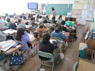 6年生は,乗り入れ授業があり,陽南中学校の技術科の先生に授業をしていただきました。物を作るときには設計図が必要になる話を聞いたり,実際に紙で立方体を作ったりする活動をしていました。中学校でどのような授業を受けられるのか,とても楽しみです。