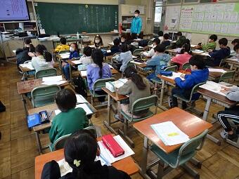 4年2組は国語「ごんぎつね」で,ごんはどんなきつねなのか,どんなところに住んでいるのか考え,意見を発表していました。