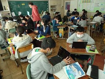 5年2組は国語で,クロームブックで集めた情報を整理して,発表用の資料を作っていました。