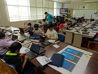 5年1組は社会で,日本の工業生産にはどのような特色があるのか,資料を見ながら意見を出していました。