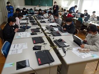 1年2組はクロームブックを使ってアンケートに答えたり,これまで学習した内容のドリルに取り組んでいたりしました。