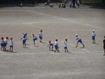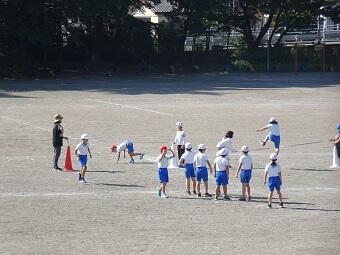 1年2組は体育で,鬼ごっこをしていました。広い校庭を思い切り走っていました。