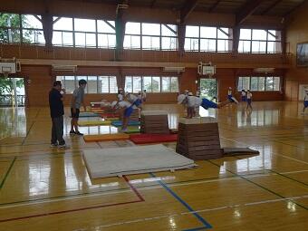 4年1組は体育「跳び箱運動」で,開脚跳びを練習していました。