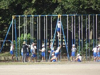 5年3組は体育で,登り棒や雲ていで体力づくりをしたり,鉄棒運動をしたりしていました。
