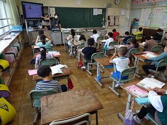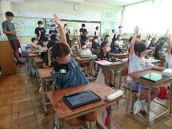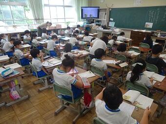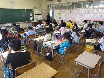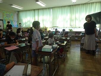 5年1組は,2学期が始まったことについて,担任から話をしていました。