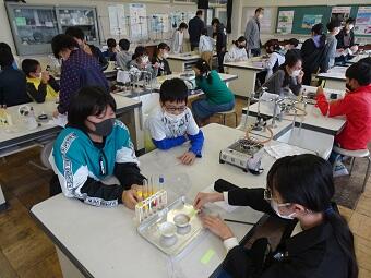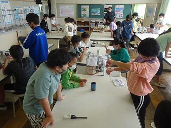 6年1組は理科「水よう液の性質」で,炭酸水から取り出した気体は何か,確かめる実験をしていました。