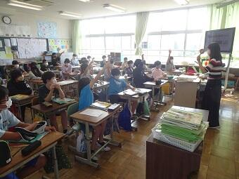 4年2組は外国語活動で,友達に贈る文房具セットを考えて,ALTに伝える活動をしていました。