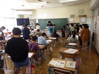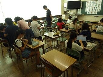 5年1組は理科で,雲の動きを観察していました。雲はありましたが非常にゆっくりな動きなので,周りの景色を見ながら観察していました。