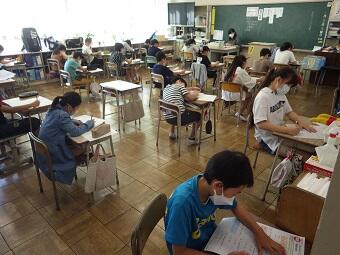5年2組は,まとめのテストをしていました。皆真剣です。学期末なので,テストをする学級が多くなります。