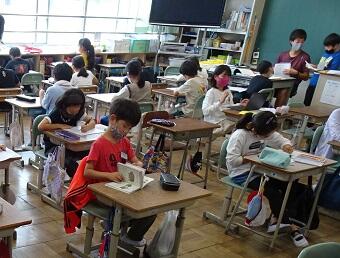 2年2組は国語で,動物の秘密を調べて皆に紹介する「ビーバーの大工事」の学習を始めていました。