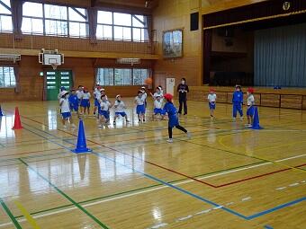5年1組は体育で,サッカーボールを使ってパスやドリブルをしたり,それをリレー形式で競争したりして,ボールの扱い方に慣れてきました。