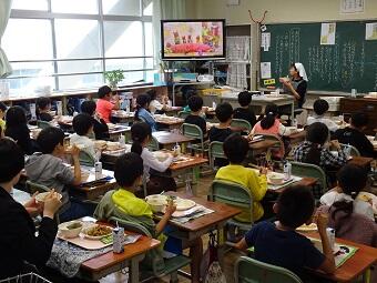 読書週間中の企画として,今日も給食時に読み聞かせの動画を放送しました。いつも黙食で食べることに集中していますが,今日は読み聞かせにも集中していました。