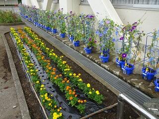 こちらは昨日の写真ですが,3年1組が理科で植物の観察をしているところです。マリーゴールドは大丈夫でしたが,ホウセンカは6月の大変な暑さで,枯れてしまった株が多かったそうです。