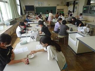 6年1組は理科で,日の当たっていないホウセンカの葉を採取し,でんぷんがあるかどうかを調べていました。