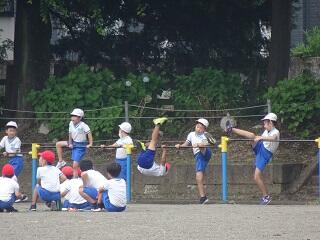 2年1組は体育で,ボール投げをしていました。栃木県の子供たちは投力が弱いと言われています。ボール投げやドッジボールをして,投力を伸ばしましょう。