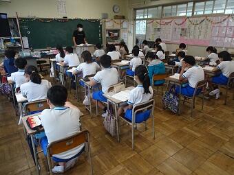 5年1組は,夏休みの学習や生活のいろいろな説明をしていました。