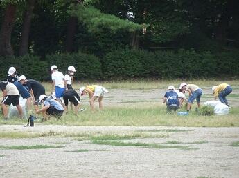 6校時に4・5・6年生のクラブ活動がありました。雨がやんでいたので,外での活動もできました。