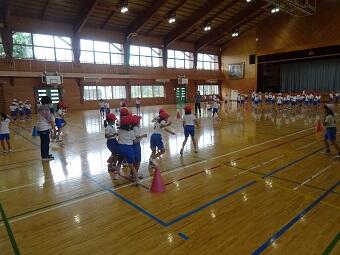 1年1組は体育で,「だるまさんが〇〇した」などのゲームで,運動遊びをしていました。