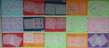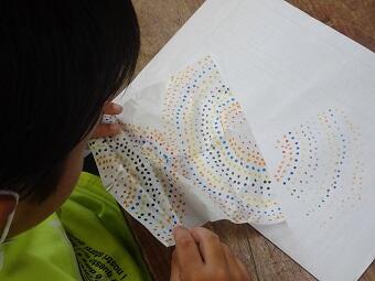 3年1組は図工で,「光と色のサンドイッチ」の作品を完成させていました。