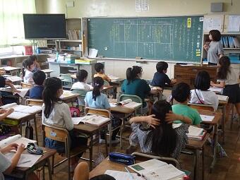 4年1組は国語「一つの花」で,新出漢字の筆順や使い方を学習していました。