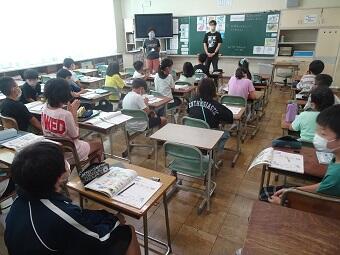 3年1組は国語「本は友だち」で,担任の経験などを伝え,夏休み中の読書の意欲付けをしていました。