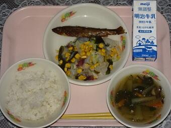 今日の給食に,「国産農林水産物等販売多様化緊急対策事業」でいただいた鮎が提供されました。