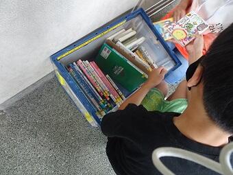 6年生が朝の読書用に,宇都宮市立図書館(巡回図書)の本から,本を選んでいました。