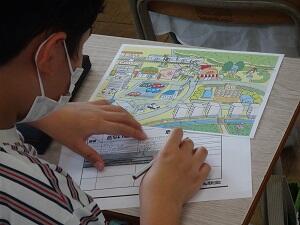 3年1組は算数で,道のりや距離,「km」について学習していました。