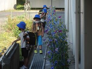 1年生のアサガオがきれいに咲いていました。