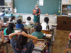 今朝は,まつぼっくりの皆様による読み聞かせがありました。皆集中して話を聞いていました。まつぼっくりの皆様,暑い中お越しいただき,ありがとうございました。またどうぞよろしくお願いいたします。