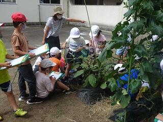2年1組は生活科で,野菜の観察をしていました。見るだけではなく,触ったりにおいをかいだりしながら観察していました。