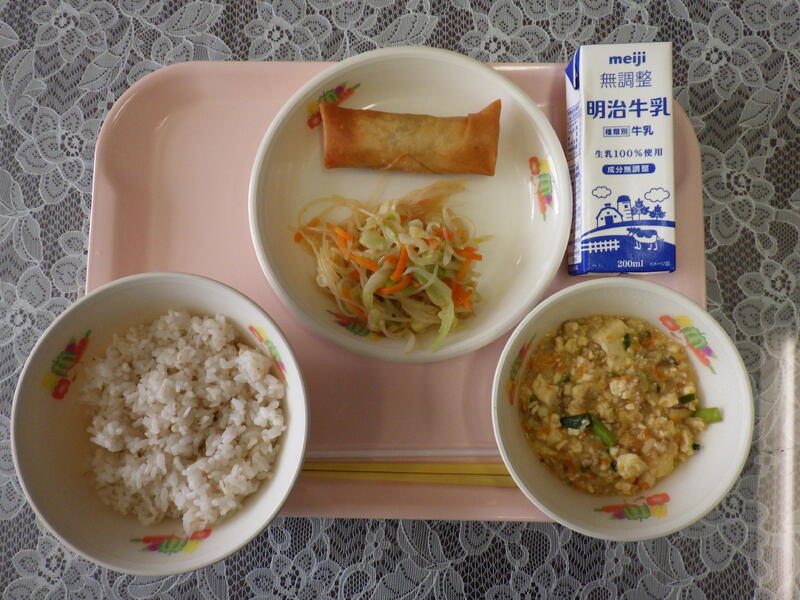 一覧へ 今日の給食 日時 2025年10月20日(月) 公開対象 今日の給食 詳細 麦入りごはん はるまき バンサンスウ マーボー豆腐 牛乳 作成者 陽南小学校管理者 更新日時 2025-10-20 12:27:02