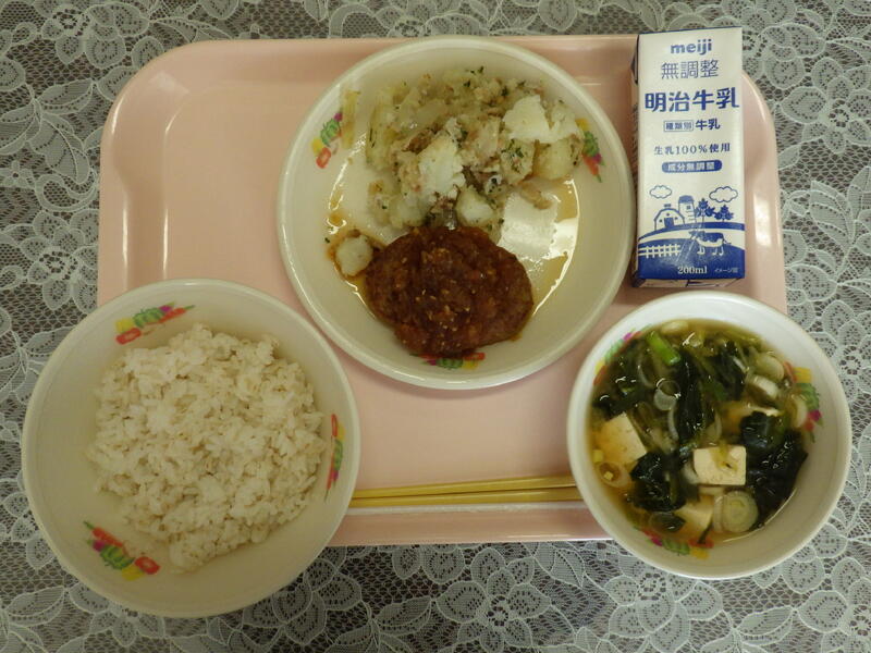 一覧へ 今日の給食 日時 2025年10月24日(金) 公開対象 今日の給食 詳細 麦入りごはん ハンバーグ(和風たまねぎソース) ジャーマンポテト みそ汁 牛乳 作成者 陽南小学校管理者 更新日時 2025-10-24 12:21:14