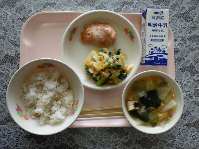 一覧へ 今日の給食 日時 2025年12月02日(火) 公開対象 今日の給食 詳細 麦入りごはん とり肉の香味焼き ゆで野菜(手作りうま塩ドレッシング) みそ汁 牛乳 作成者 陽南小学校管理者 更新日時 2025-12-02 12:22:04