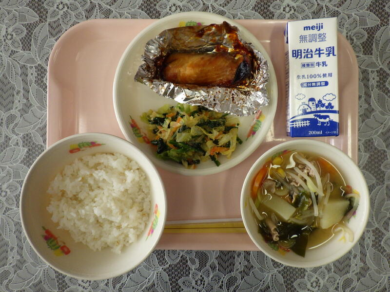 一覧へ 今日の給食 日時 2026年01月19日(月) 公開対象 今日の給食 詳細 麦入りごはん たらの照り焼き ごま酢あえ どさんこ汁 牛乳 作成者 陽南小学校管理者 更新日時 2026-01-19 12:22:37