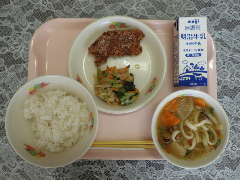 本日の船頭汁には,野菜やうどん,鮭が入っていて,栄養満点でした。