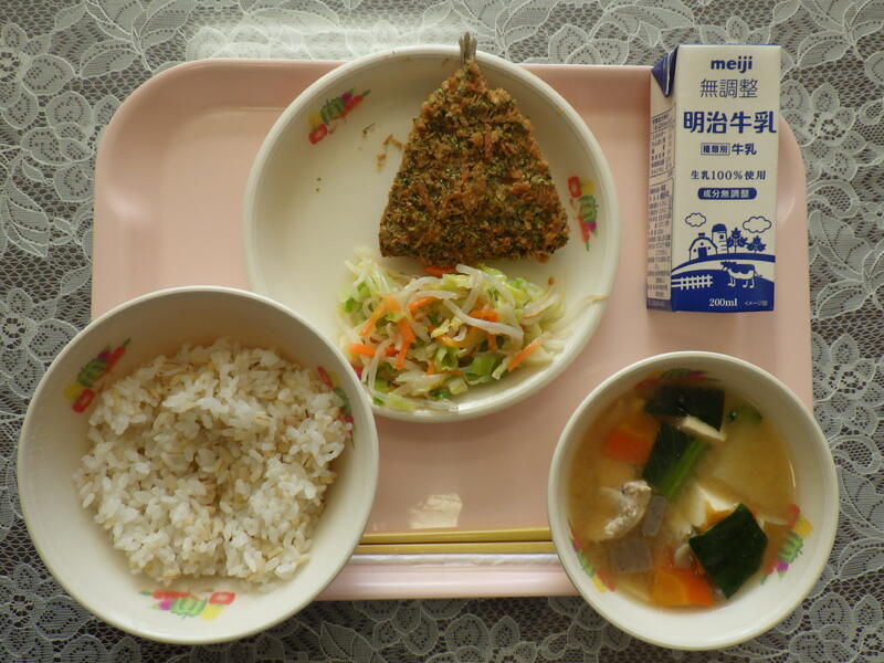 一覧へ 今日の給食 日時 2025年12月09日(火) 公開対象 今日の給食 詳細 麦入りごはん アジフライ(あおさ入り) ゆで野菜(手作り玉ねぎドレッシング) いなか汁 牛乳 作成者 陽南小学校管理者 更新日時 2025-12-09 12:08:08