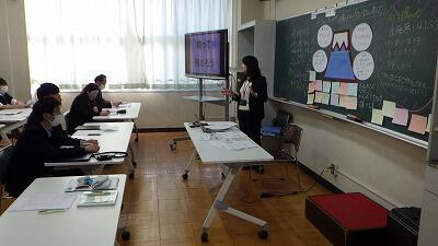 そこで11月7日(金)、千葉県富津市立吉野小学校長 三浦貴子先生をお招きして、校内道徳研修の充実を図りました。今回、三浦先生が3年生道徳で模範授業を行なってくださり、全教員で授業参観し、授業力向上や道徳の授業実践意欲の向上を目指しました。授業参観後は、授業づくりや演習などを行い、本校教員が「生徒が自ら考え、理解し、主体的に考え議論する道徳~道徳的実践力を高める工夫~」を実践できるよう研修の充実を図りました。