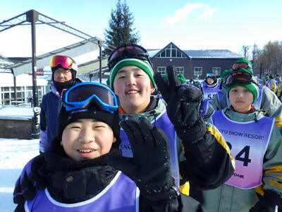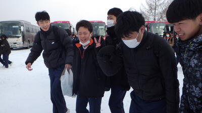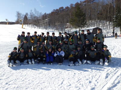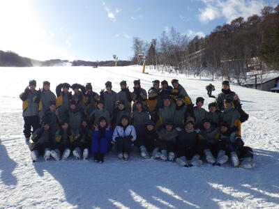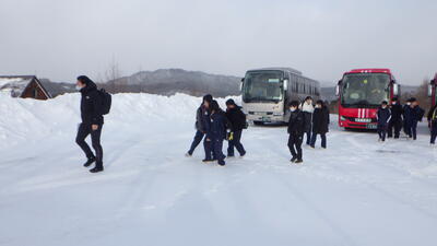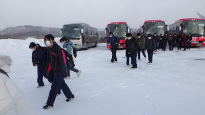 抜けるような冬空の下、本日1月30日(金)に立志式記念行事のスキー教室が行われます。出発式を終えた生徒たちは、期待を胸にハンターマウンテン塩原スキー場へと向かいました。