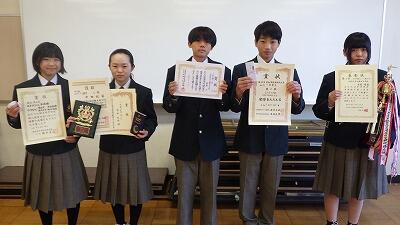 12月17日(水)、テレビ放送にて表彰を行いました。大会やコンクール等において「Keep going・生きる ~一生懸命はかっこいい~」のスローガンを体現し、素晴らしい成績を収めることができました。日頃の積み重ねが、大きな成果となって表れました。この喜びを糧に、今後もさらなる高みを目指して成長し続けていくことを期待しています。
