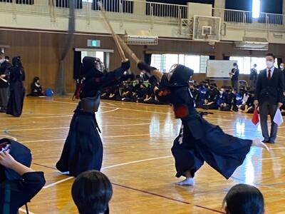 ■第33回関東中学生弓道大会(水戸市、東日本技術研究所武道館弓道場)において、男子団体が優勝しました。関東大会という大舞台で、この上ない成績を収めました。男子個人でも、岩上さんが5位に入賞しました。