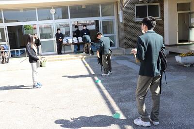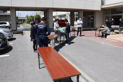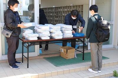 4月23日(木), 臨時休業期間延長に伴い, 2・3年生を対象に, 補助教材の販売と休業期間中の学習プリント等の配付が行われました。新型コロナウイルス感染症防止対策として, 陽西中学校としてはクラスごとに時間や場所を分けて, 生徒同士の間隔をとるようにしながら配付を行いました。「3密」を防ぐため,各クラスの配付時間が短い中でしたが, ご協力いただきありがとうございました。24日(金)は1年生を対象として, 休業期間中のプリント等の配付が行われます。