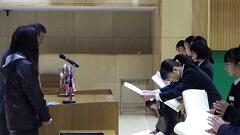 3月3日(木)、2年生の立志式が行われました。一度は延期になってしまった立志式ですが、今回、無事に実施することができました。立志式に先立ち4時間目に行われた道徳の「いのちの授業」では、サプライズで書いていただいた家族からの手紙を読み、涙を流す生徒がたくさんいました。家族愛に触れ、改めて感謝の気持ちをもつことができました。