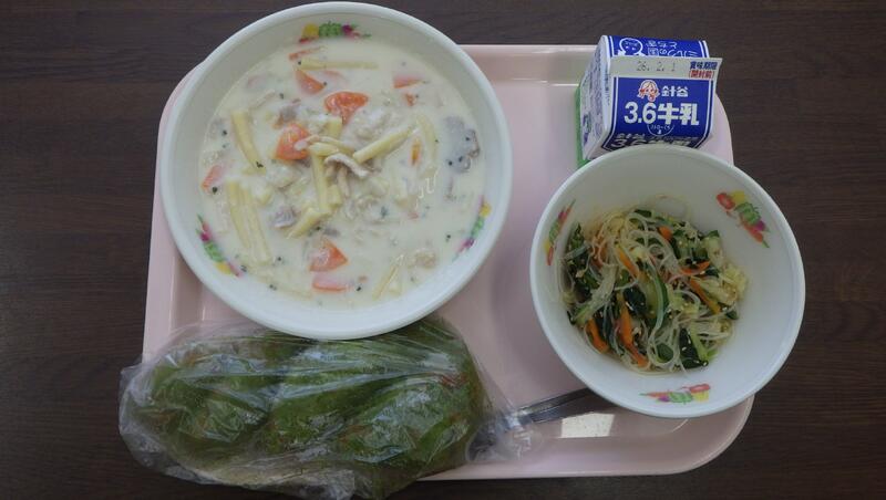 1/21(水) 給食 もっちり抹茶揚げパン他 投稿日時 : 01/21 陽西中学校管理者 〈もっちり抹茶揚げパン 牛乳 マカロニのクリーム煮 春雨サラダ〉 Tweet {{options.likeCount}} {{options.likeCount}} {{options.unlikeCount}} {{options.unlikeCount}} 0 コメント