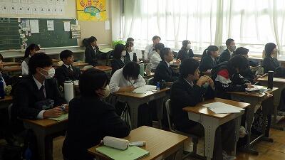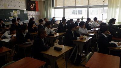 本校は『①「感謝」「思いやり」の心を持ち、謙虚に学ぶ広い心を持つ生徒の育成 ②生命の尊さを知り、自他の生命を尊重する心の育成』を重点目標に掲げ、学校スローガン「Keep going・生きる~一生懸命はかっこいい~」の下、あらゆる場面で「心の教育」を実践し、生徒のよりよい生き方につなげていくことを目指しています。